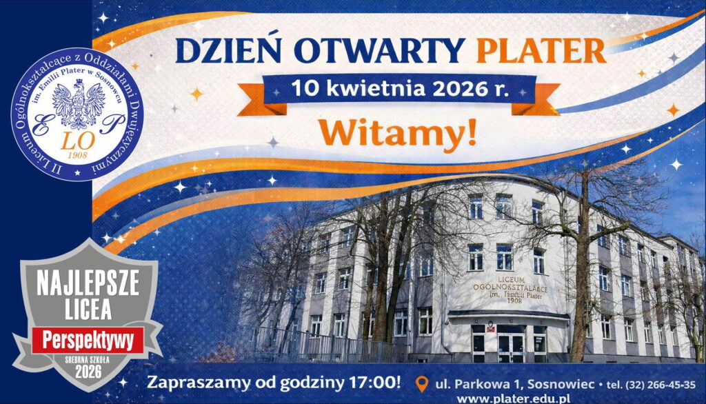 9 kwietnia 2026 Dzień otwarty w Plater Inne artykuły Sport Drużynowe Biegi Przełajowe 19 kwietnia 2026 0 Zawody kończące szkolny sezon lekkoatletyczny cieszyły się dużym zainteresowaniem... Wydarzenia Wojewódzkim Konkursie Literackim EKO-LIST DO POSTACI MITOLOGICZNEJ 15 kwietnia 2026 0 Z przyjemnością informujemy, że uczennica klasy 1c Zuzanna Sochacka... Konkursy Gigathon – Ogólnopolski Konkurs 2 kwietnia 2026 0 Informujemy, że ruszyły zapisy do Gigathonu – Ogólnopolskiego Konkursu Matematyczno-Informatycznego, który... Konkurs recytatorski „Moja hierarchia wartości” – konkurs 2 kwietnia 2026 0 W dniu 23 marca w naszym Liceum odbyła się... Konkursy X edycja konkursu PLATERIADA rozstrzygnięta! 2 kwietnia 2026 0 W tym roku szkolnym turniejowe zmagania uczniów szkół podstawowych...